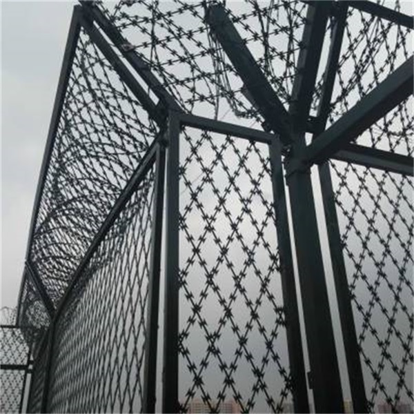 監(jiān)獄刀片刺網(wǎng)防護(hù)網(wǎng)的表面處理方式一般為噴塑處理,顏色多樣。- 般采用墨綠色、色、灰色居多;刀刺網(wǎng)網(wǎng)孔常見的有菱形和
