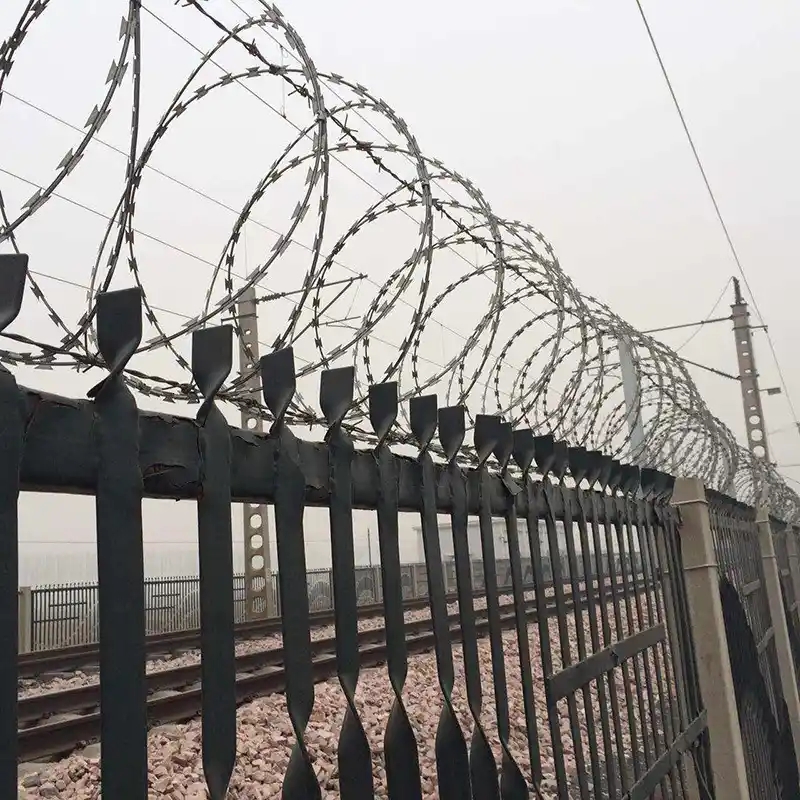 跨度為3米。在用刀片纏繞帶刺鐵絲網之后,每隔120度用帶刺鐵絲網夾固定帶刺鐵絲網,并用柵欄代替柵欄。圍欄更具防御性。壽命更長:鋼筋混凝土圍欄+ 0.5米高BARBED滾動保持架。拼接支架由矩形鋼管制成,與柱支架相同。該產品具有防腐,抗老化,抗日光和耐候性的特點。施工速度快,不僅省錢,而且有效地起到了威懾作用