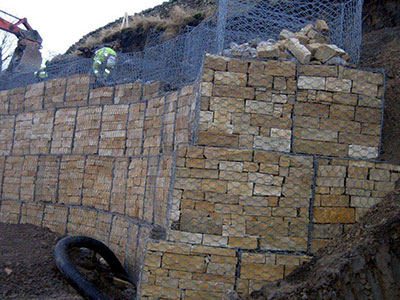 石籠網箱在施工現場經石頭填充,構成具有柔性、透水性及整體性的結構, 如擋墻、河道襯砌、堰等支擋的防沖蝕工程。 石籠網箱由間隔1米的隔板(雙絞合六邊形金屬網片)分成若干單元格,為了加強石籠網箱結構的強度, 所有的面網板邊端均采用直徑更粗的鋼絲。控制和引導河流及洪水泄洪壩、導流壩巖崩防護、防止水土流失、大橋保護、固土結構、海濱防御工程、港口工程和擋土墻道路防護.